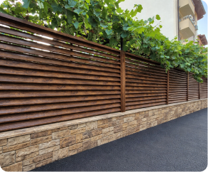 Всяка оградна щора от нашата продуктова линия може да бъде персонализирана по отношение на цвят и текстура, като клиентите могат да избират от широка палитра от цветове и дизайни, включително дървесни и каменни имитации. Предлагаме оградни щори, които са не само функционални, но и естетически привлекателни, което ги прави идеални за всякакви приложения – от домашни градини до комерсиални имоти.