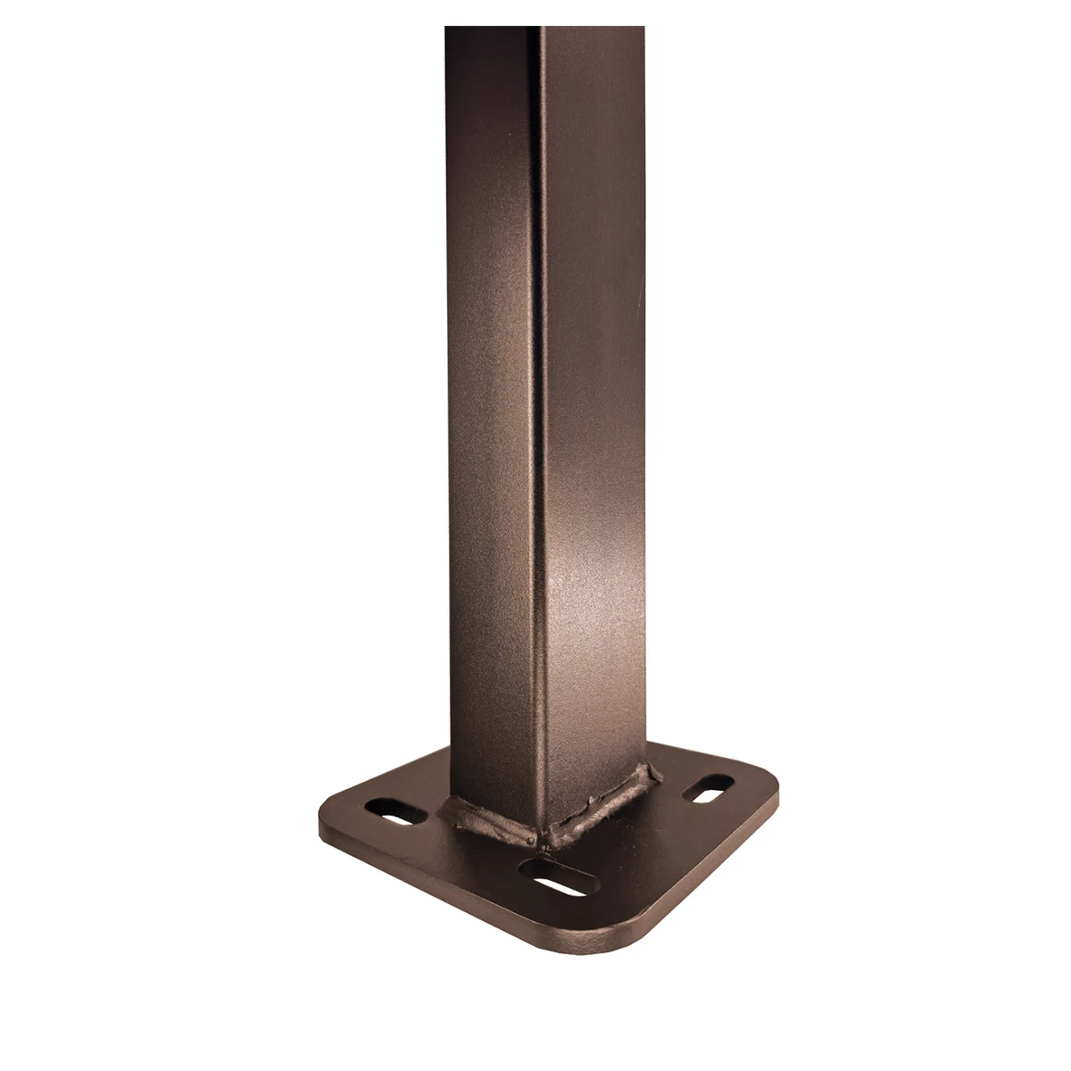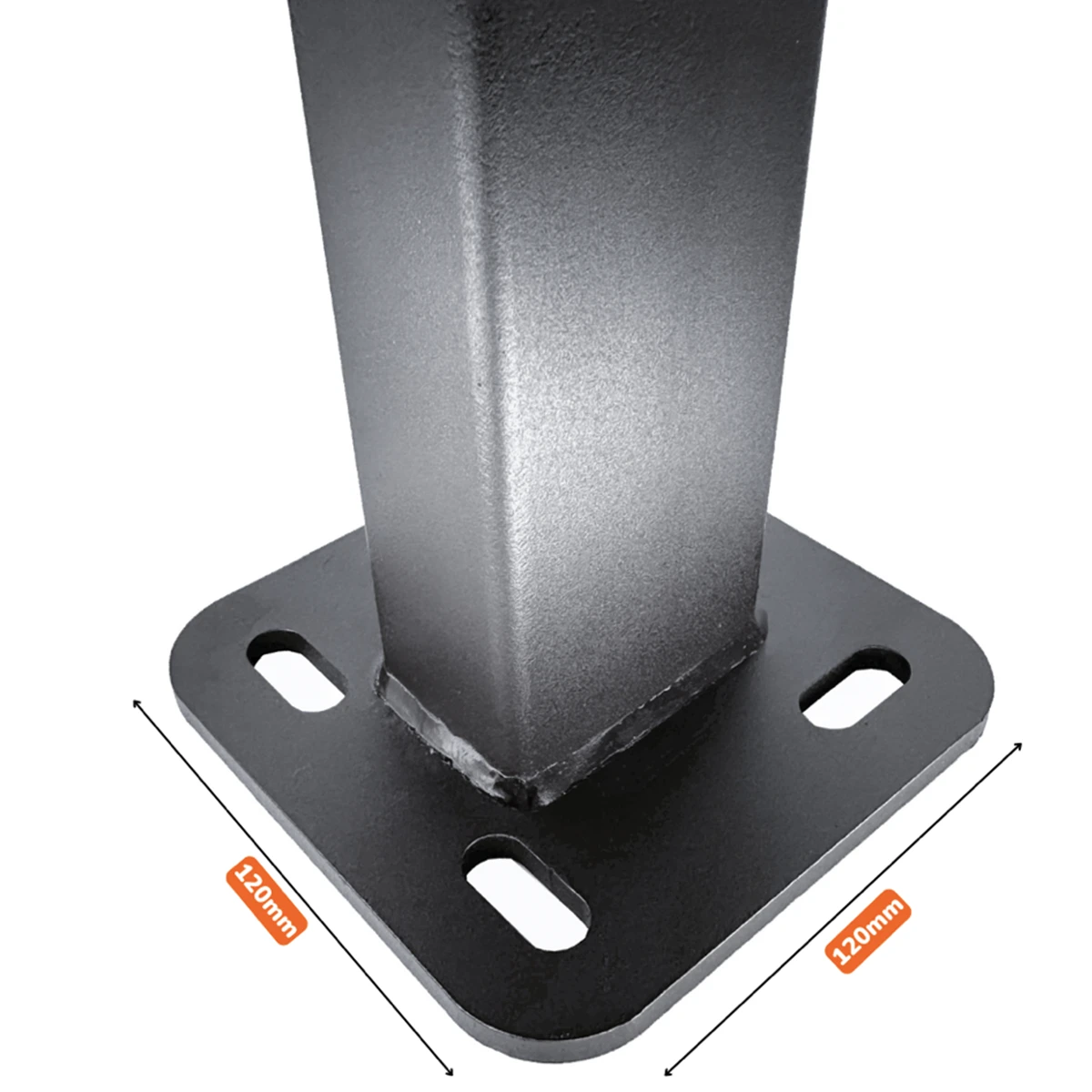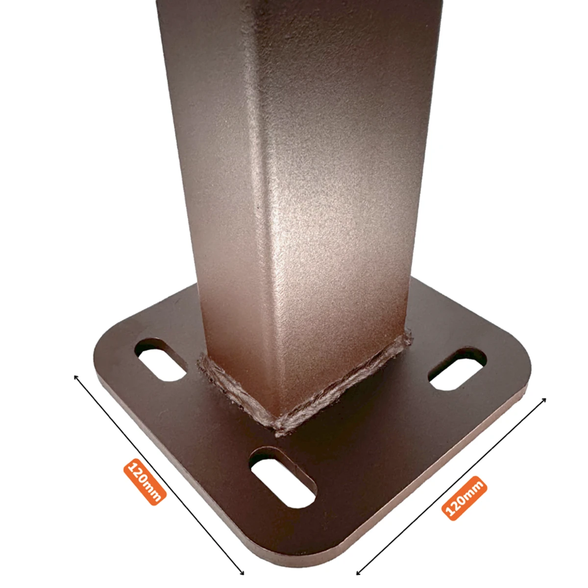 Метална поцинкована колона 60/40/2мм прахово боядисана с изпичане на боя при 200 градуса планка 120х120х5 мм с 4 елипсовидни отвора 20х13 мм