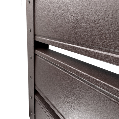 – Материал: поцинкована стомана, покрита с полимерна боя
