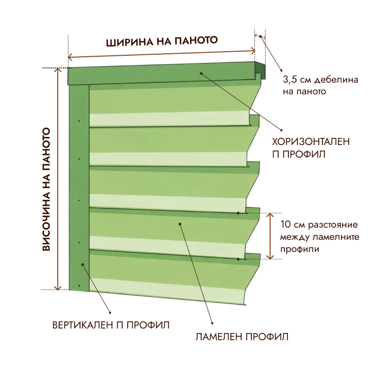 - Минимален размер на ламел 0,3 м, максимален размер 3 м