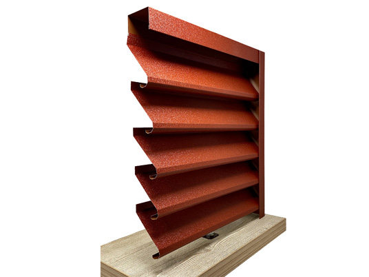 Ламелите за щори за ограда са изработени от поцинкована ламарина, покрити с два слоя грунд. Лицето на ламела е покрито с ПВЦ струкурирана боя цвят “Керемида”, а гърба на ламела е в цвят светло кафяв.