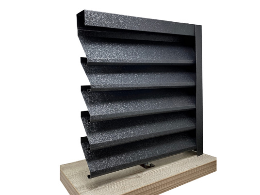 Ламелите за щори за ограда са изработени от поцинкована ламарина, покрити с два слоя грунд. Лицето на ламела е покрито с ПВЦ струкурирана боя цвят “Тъмно сив”, а гърба на ламела е в цвят тъмно сив.